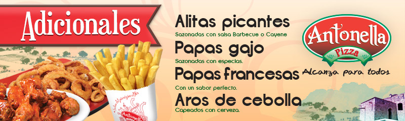 Complementa tu Suprema Antonella, Dolce Antonella o Combo con alguno de estos exquisitos platillos, para ese huequito que aún te queda.